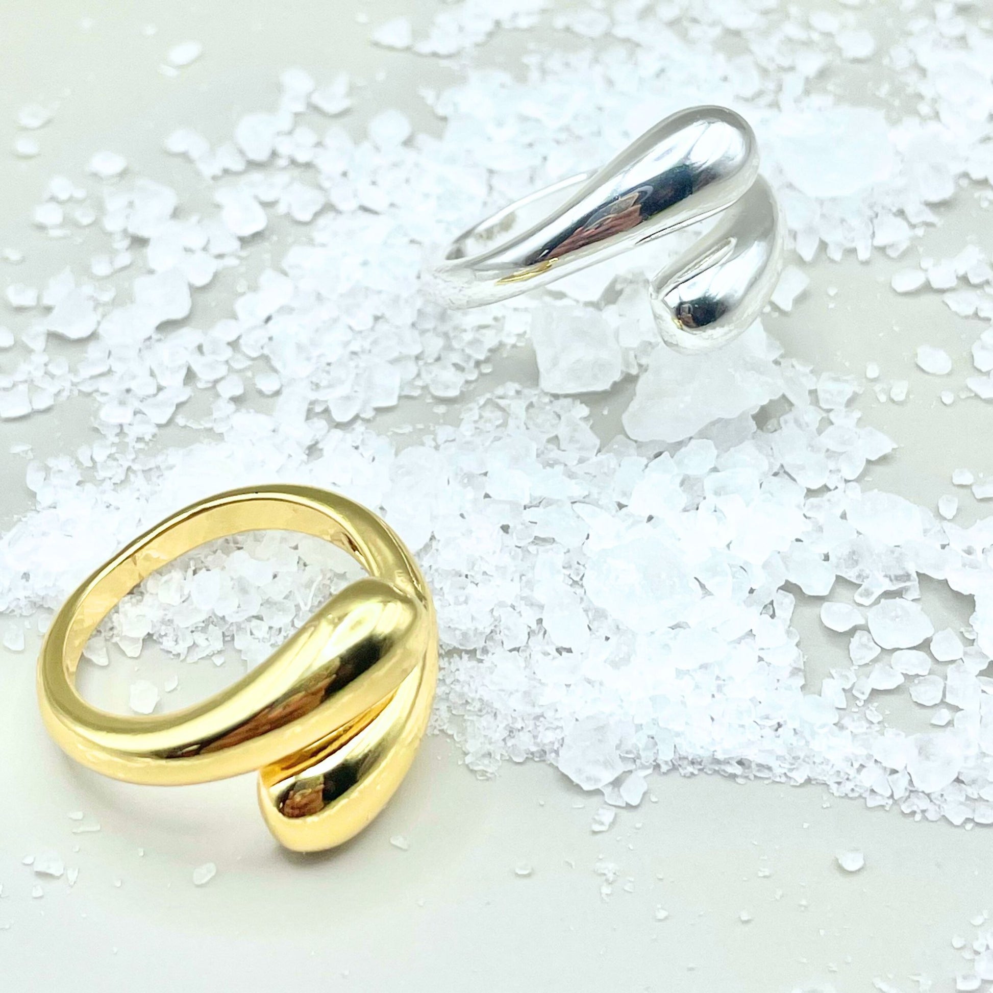 La bague Divine en acier inoxydable, ornée d’une double goutte, sublimera tous les styles.