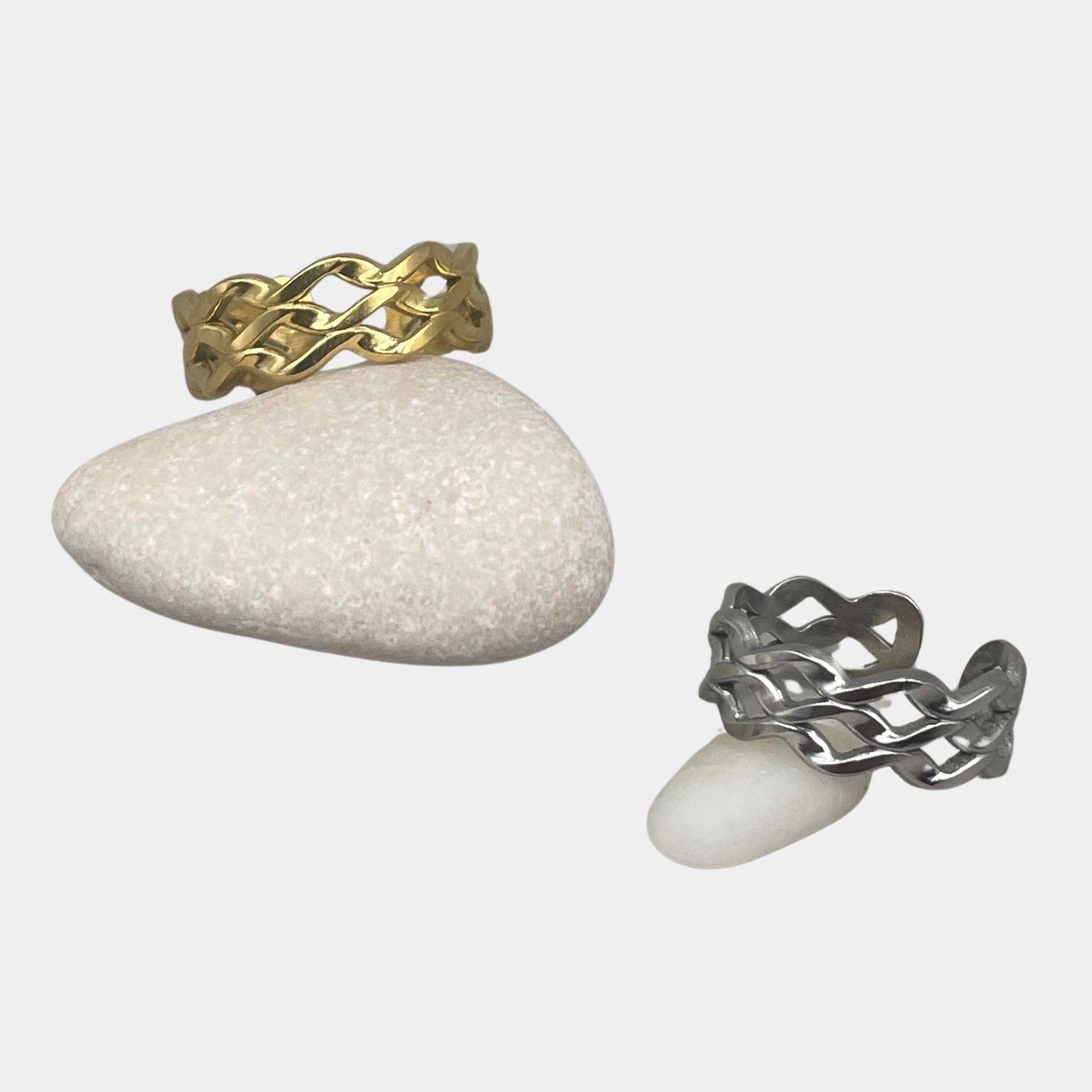 L'effet vague de la bague Elise en acier inoxydable sublimera votre main avec élégance et douceur.