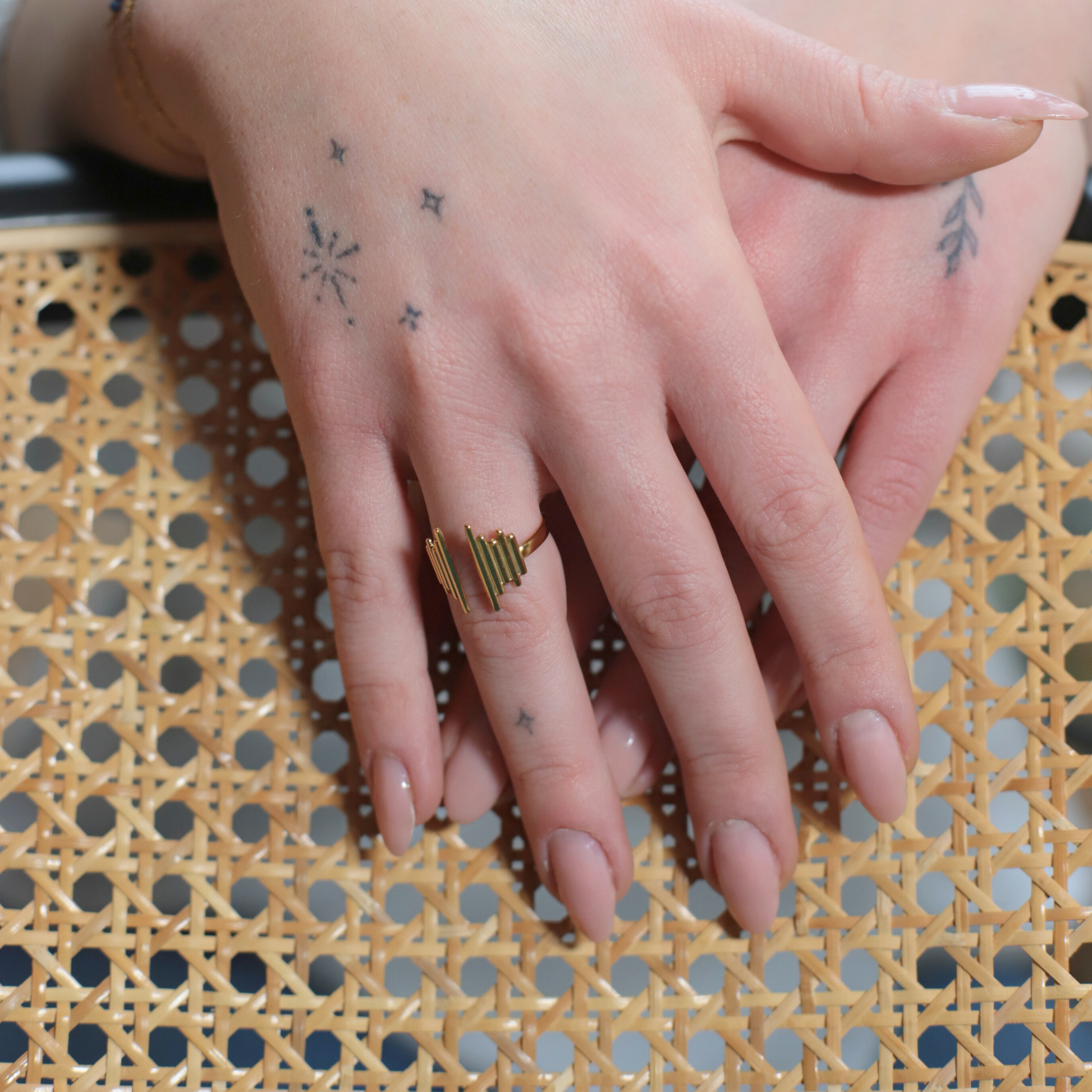 Accordez du rythme à votre look avec la bague Tempo en acier inoxydable et son jeu d'épaisseur.