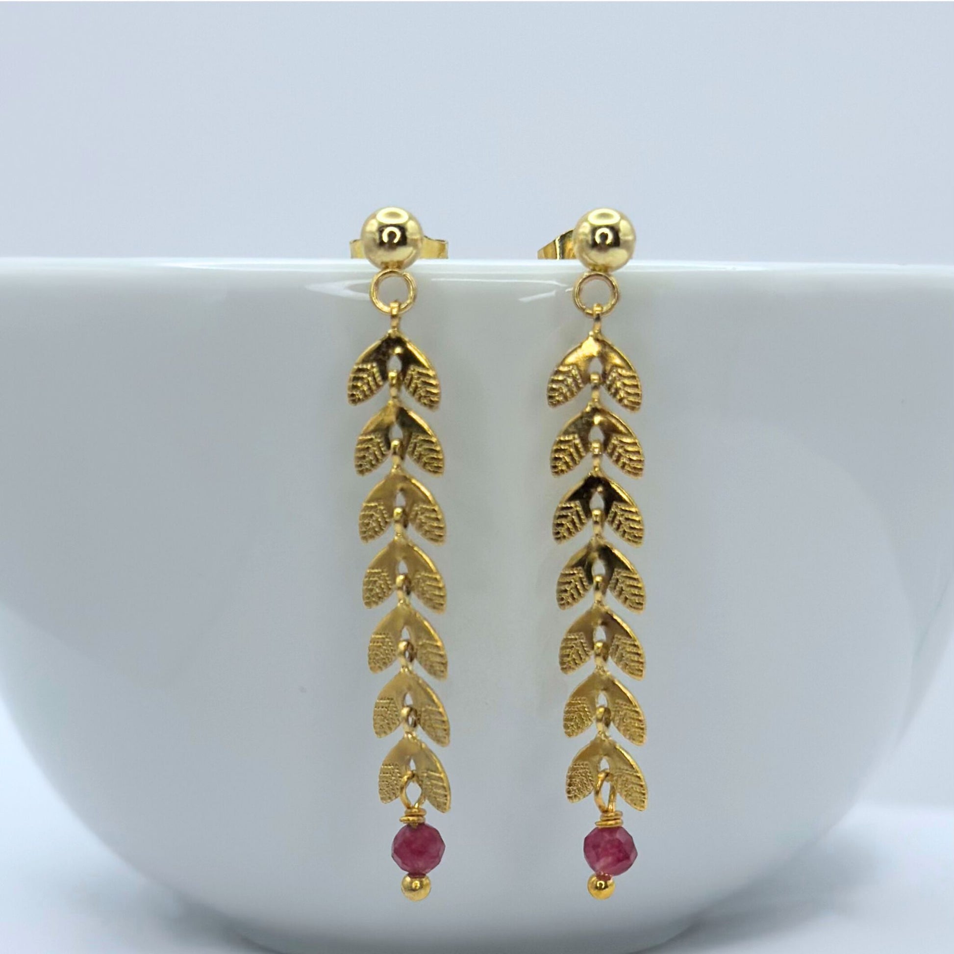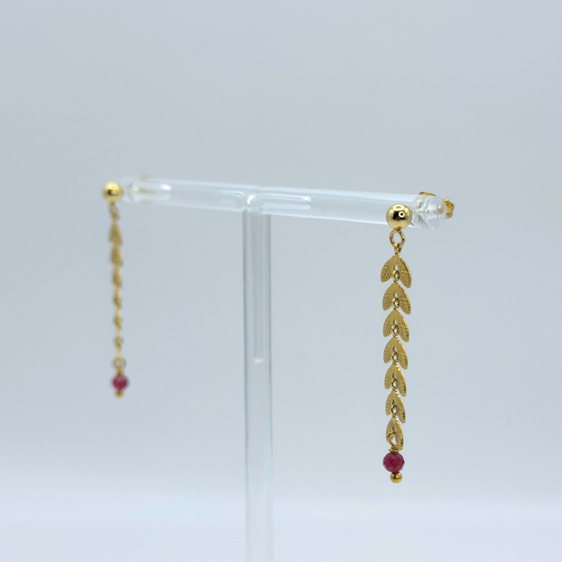 Faites briller autour de votre visage les boucles d'oreilles Artémis, avec la chaîne "épis" sur laquelle se suspend la pierre naturelle qui vous ressemble.