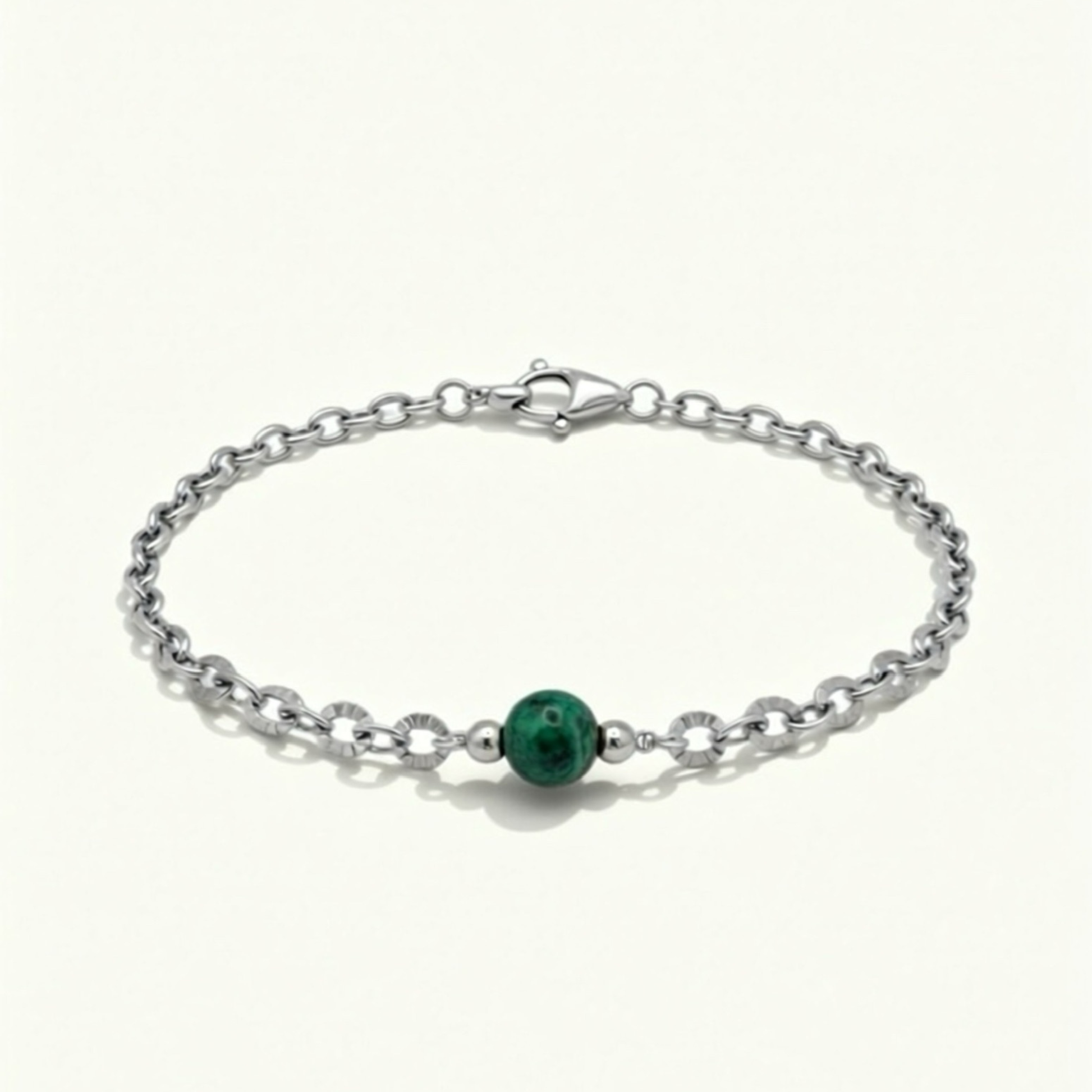 • Matériaux : chaînes et apprêts en acier inoxydable, pierre naturelle Ø 6 mm.