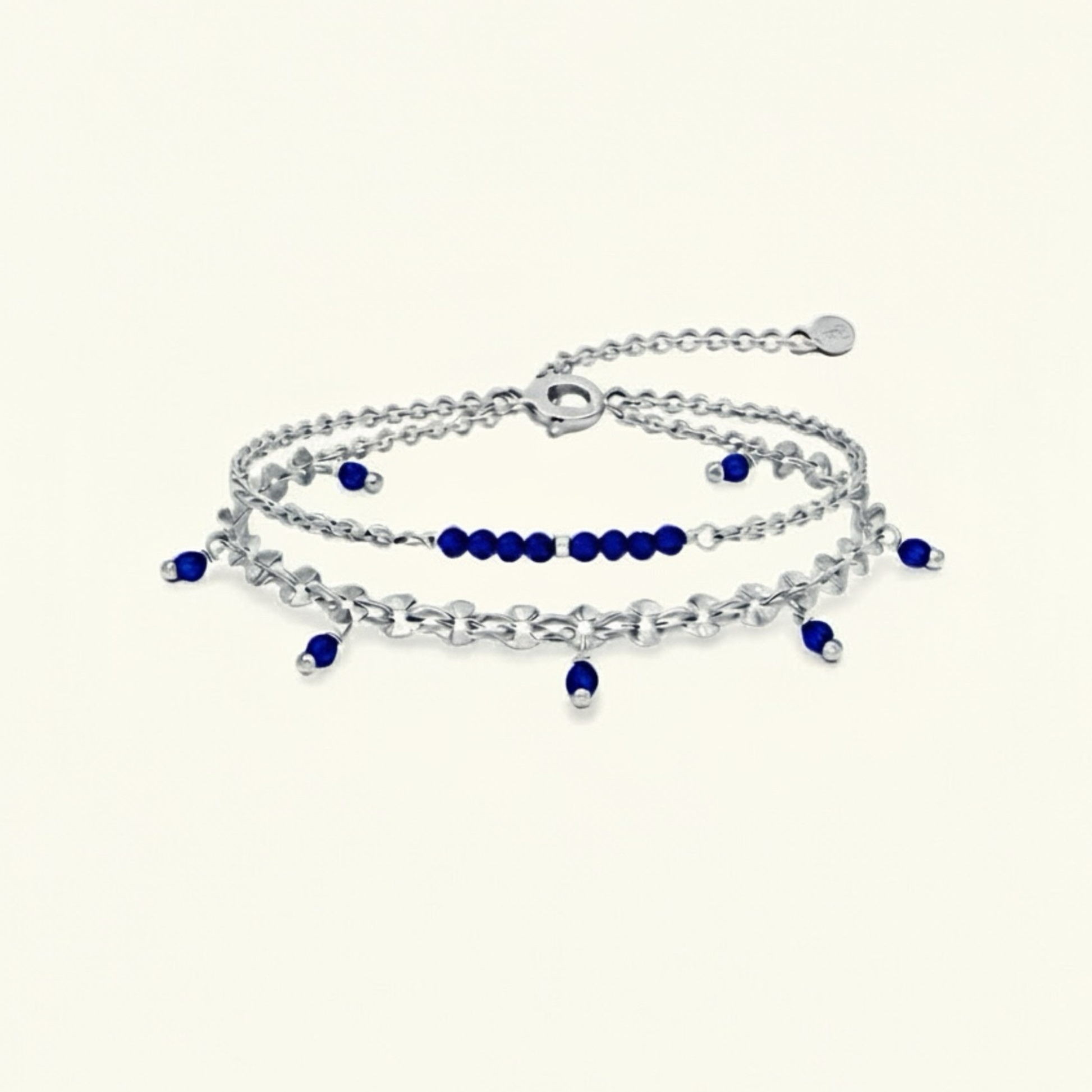 Le bracelet Charmeuse et ses doubles rangs de chaînes prennent vie à votre poignet grâce à la couleur de pierre naturelle de votre choix.