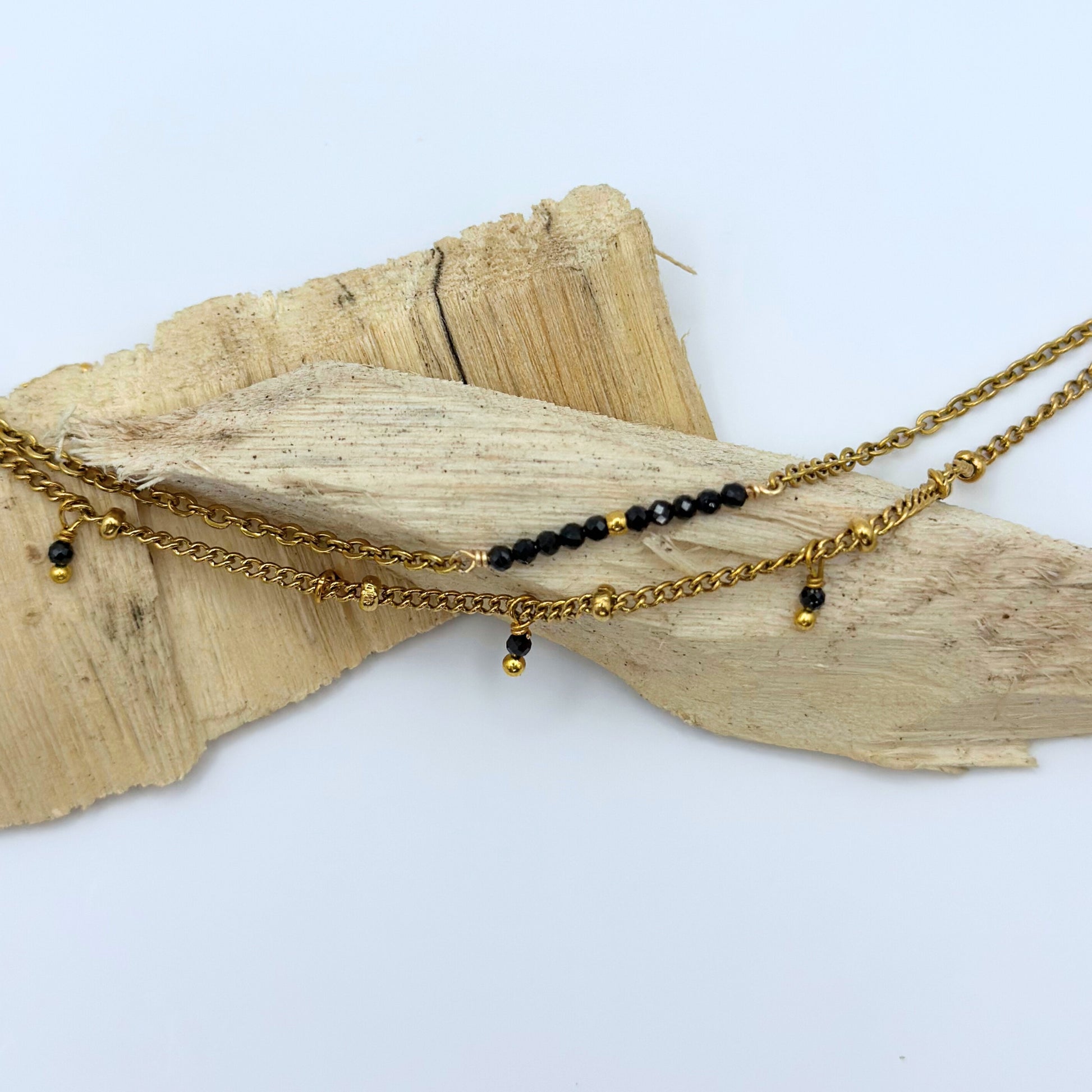 • Matériaux : chaîne et apprêts en acier inoxydable, pierres naturelles Ø 3 mm.